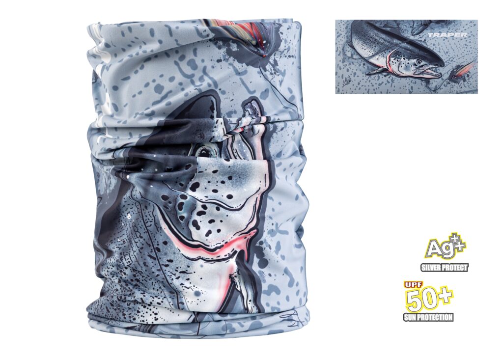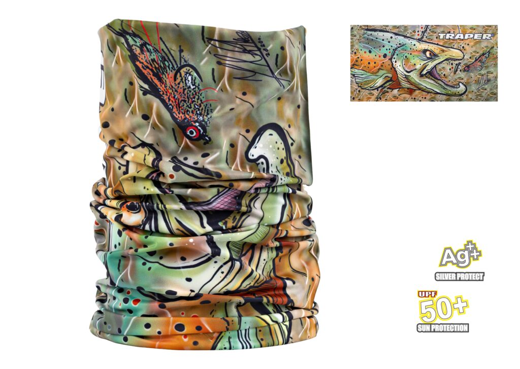 Chusta Art. Jest wykonana z elastycznego, miękkiego, przyjemnego w dotyku poliestru VPF50. Materiał ten zapewnia wysoką ochronę przed promieniami słonecznymi. Jony srebra zawarte w tkaninie działają bakteriobójczo, utrzymując pełną higienę. Dzięki kolorowym, artystycznym nadrukom, chusty podkreślają niepowtarzalny, charakterystyczny klimat dla wędkarstwa muchowego. Minimalne rozmiary chusty pozwalaj zmieścić ją z łatwością w najmniejszej kieszonce kamizelki.